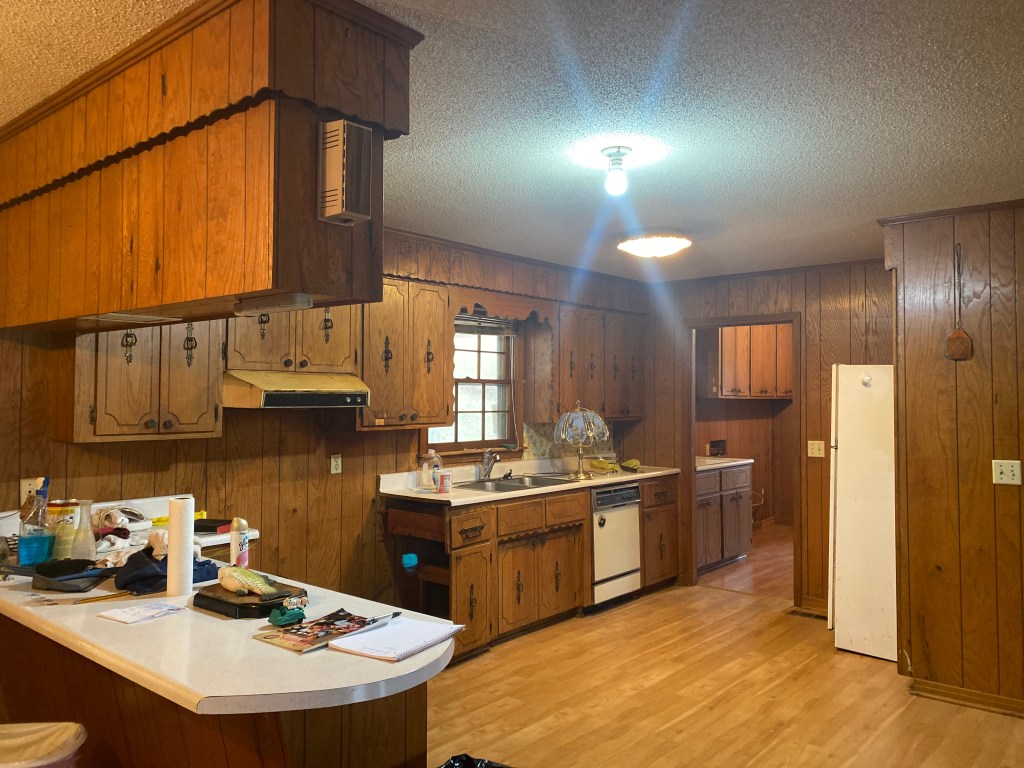 God has proven to be our provider again and again. When my husband and I were married in December 2020, things were going well. I had a job as a principal of a Christian School and God blessed Bill financially at his new local Hearing Aid office. We found a home that we both knew was specifically picked for us by God (3 minute from his office and 6 minutes from our church). It was nothing fancy. The outside and inside looked the same as the day it was built (1972)! It was paneling in EVERY room, yellowed popcorn ceilings, and old appliances or none at all. It was ugly! BUT the land was full of life! It has a running creek, and a Spring House with water coming up from the ground that feeds three ponds. Wow! Did it have running water on the land. Me, a nature lover and my husband’s desire of finding land with running water was fulfilled with this property. We knew that this property was soon to be ours. The house on the other hand was in desperate need of a makeover inside and out.